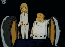 Professor Amamori has the generic appearance of characters designed by Leiji Matsumoto, oval shaped features mainly seen on the head and is rather short and overweight. He is always seen wearing white lab clothes with white gloves, a brown belt, and yellow buckle. His black hair has either been natural or blown off and replaced with a toupee.